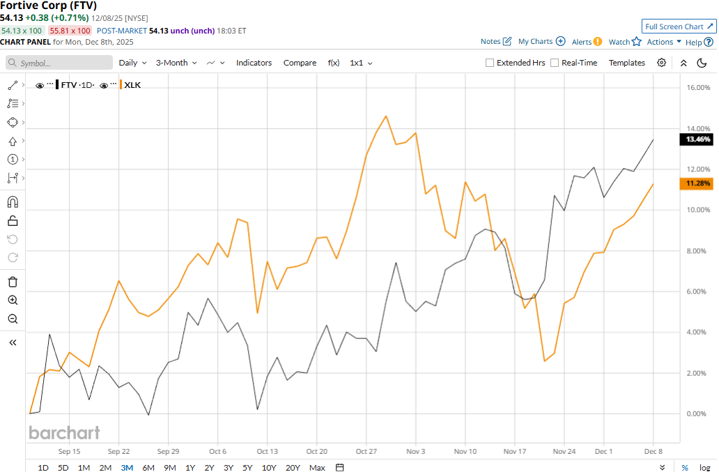 Fortive touched its 52-week high of $83.32 on Feb. 20 and is currently trading 35% below that peak. Meanwhile, FTV stock has gained 12.8% over the past three months, underperforming the Technology Select Sector SPDR Fund’s (XLK) 11.5% surge during the same time frame.