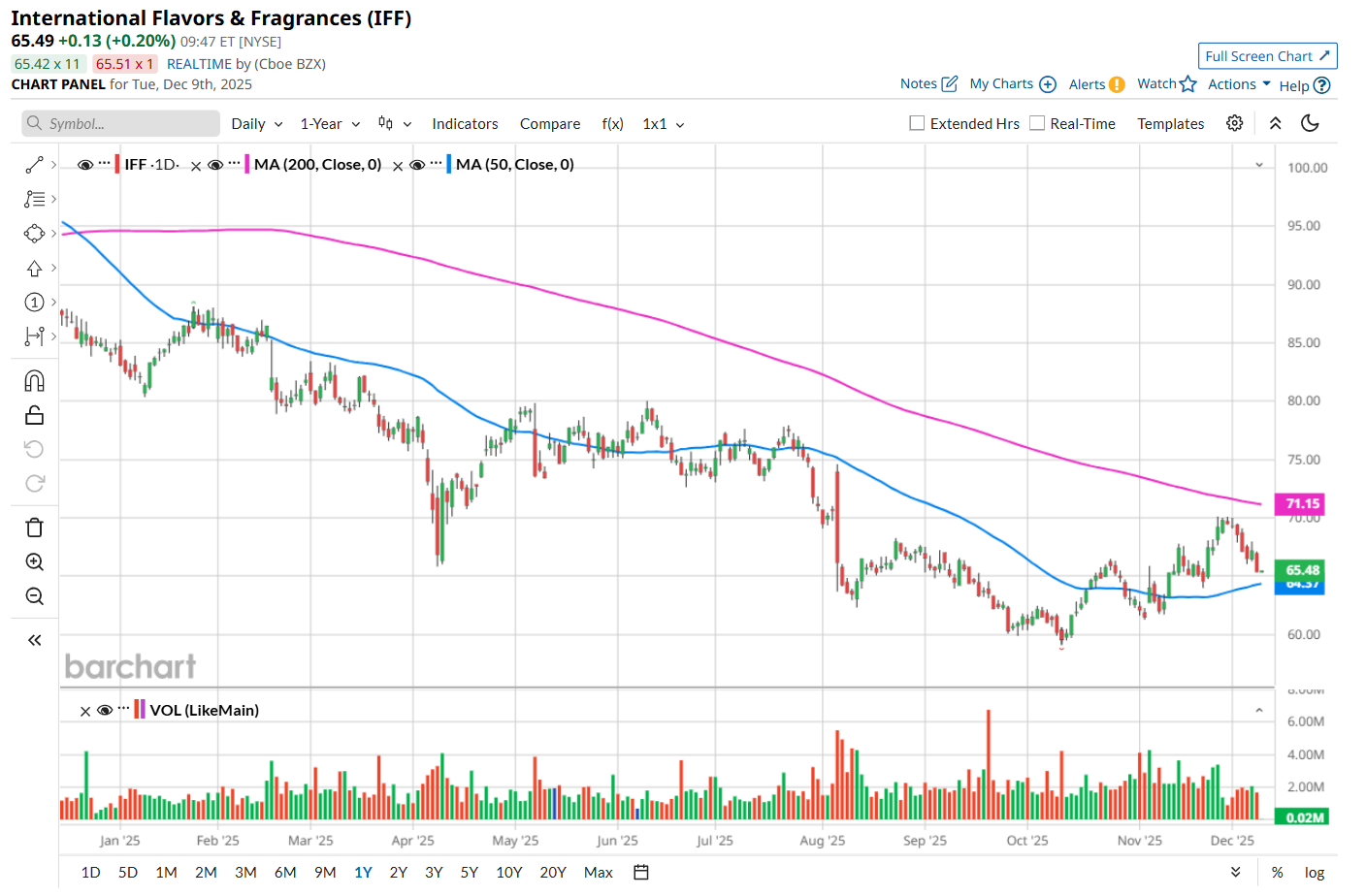 New York-based International Flavors & Fragrances Inc. (IFF) is a global ingredients and specialty-solutions company. Valued at a market cap of $16.7 billion, the company formulates sensory and functional solutions that enhance taste, smell, texture, and nutrition in everyday products.
