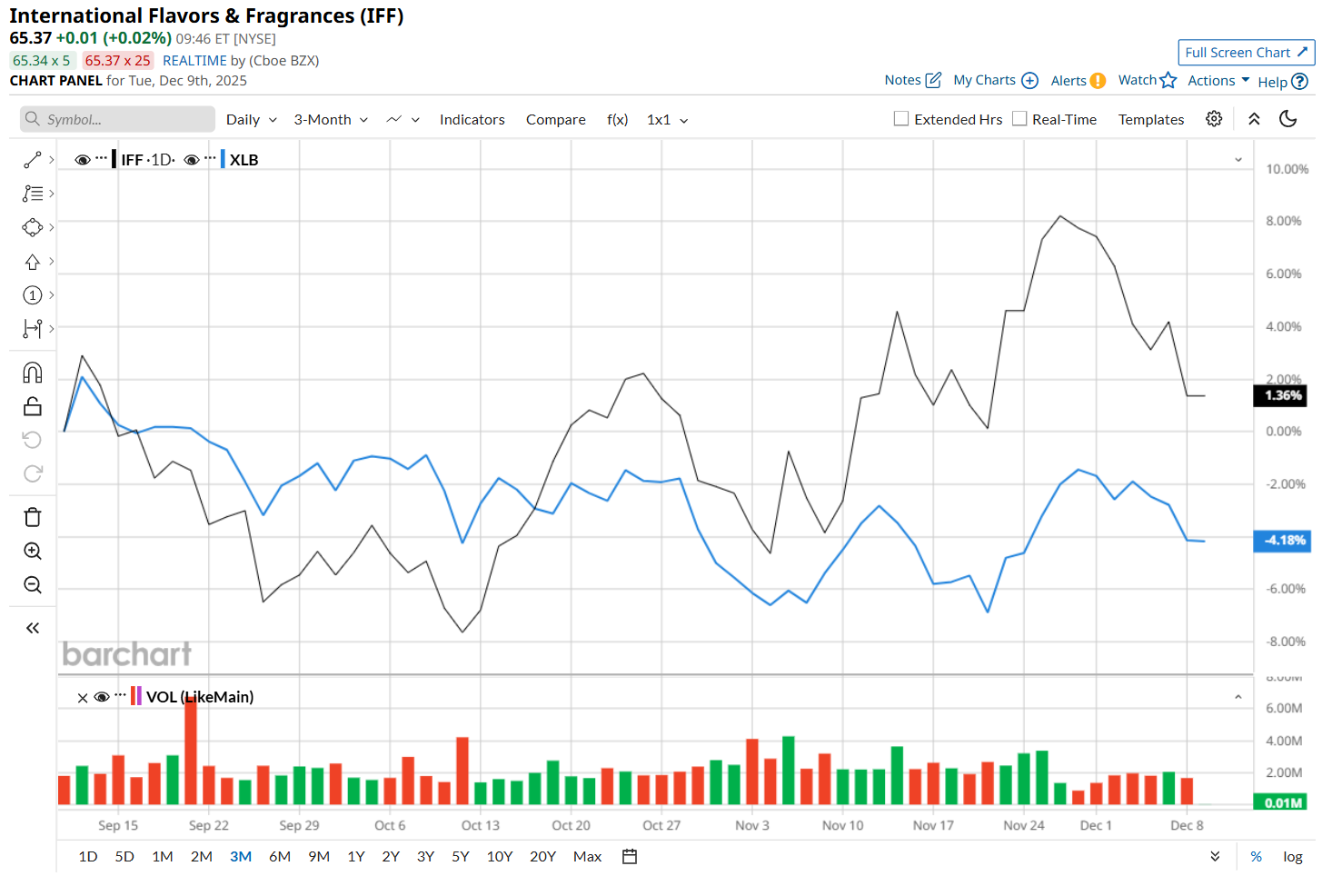 This specialty-solutions provider has slipped 27.9% below its 52-week high of $90.64, reached on Dec. 9, 2024. Shares of IFF have declined 1.2% over the past three months, outperforming the State Street Materials Select Sector ETF’s (XLB) 3.9% drop during the same time frame.